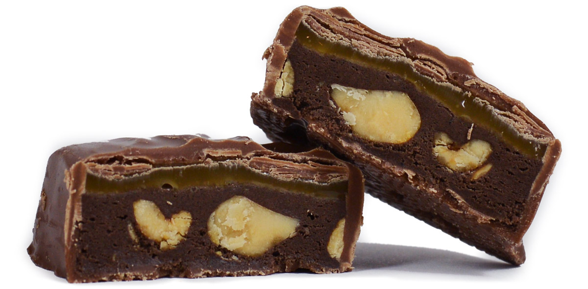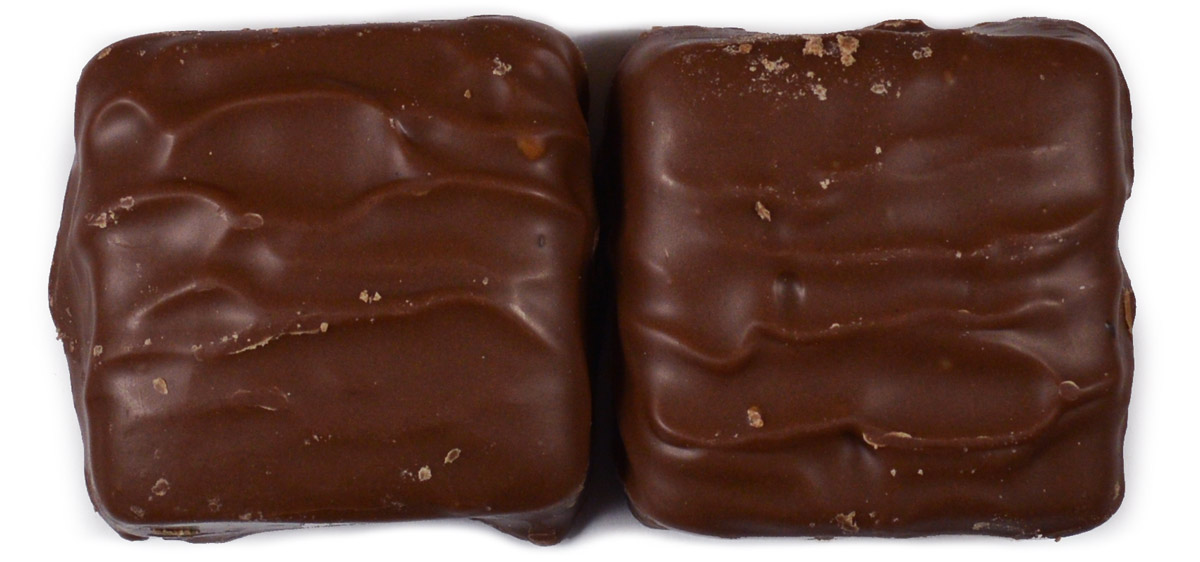 Nutritional info (1 bar, 49 grams): 280 calories, 18 grams of fat (11 grams of saturated fat, 0 grams of trans fat), 10 mg cholesterol, 35 mg sodium, 26 grams of carbohydrates, 26 grams of sugar, 0 grams of fibre, 3 grams of protein.