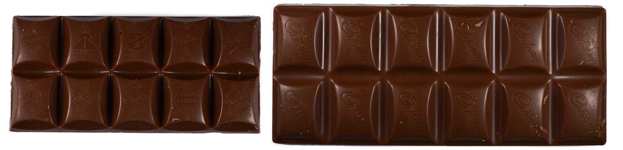 (That’s Caramilk on the left and Dairy Milk on the right; all unwrapped pictures were shot at the same time, so they’re to scale.)