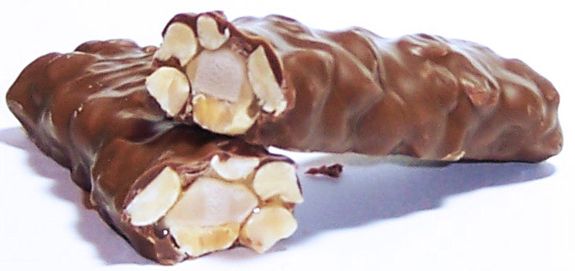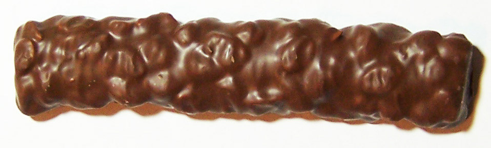 As for the bottom layer, it’s kind of like a Crunch bar, only with crunchier, more substantial pieces of crisped rice. The crunchy rice works very well here, doing a great job of complimenting the chewiness of the nougatine. Also, the amount of chocolate in the bottom layer gives this bar a much chocolatier flavour than the standard candy bar.